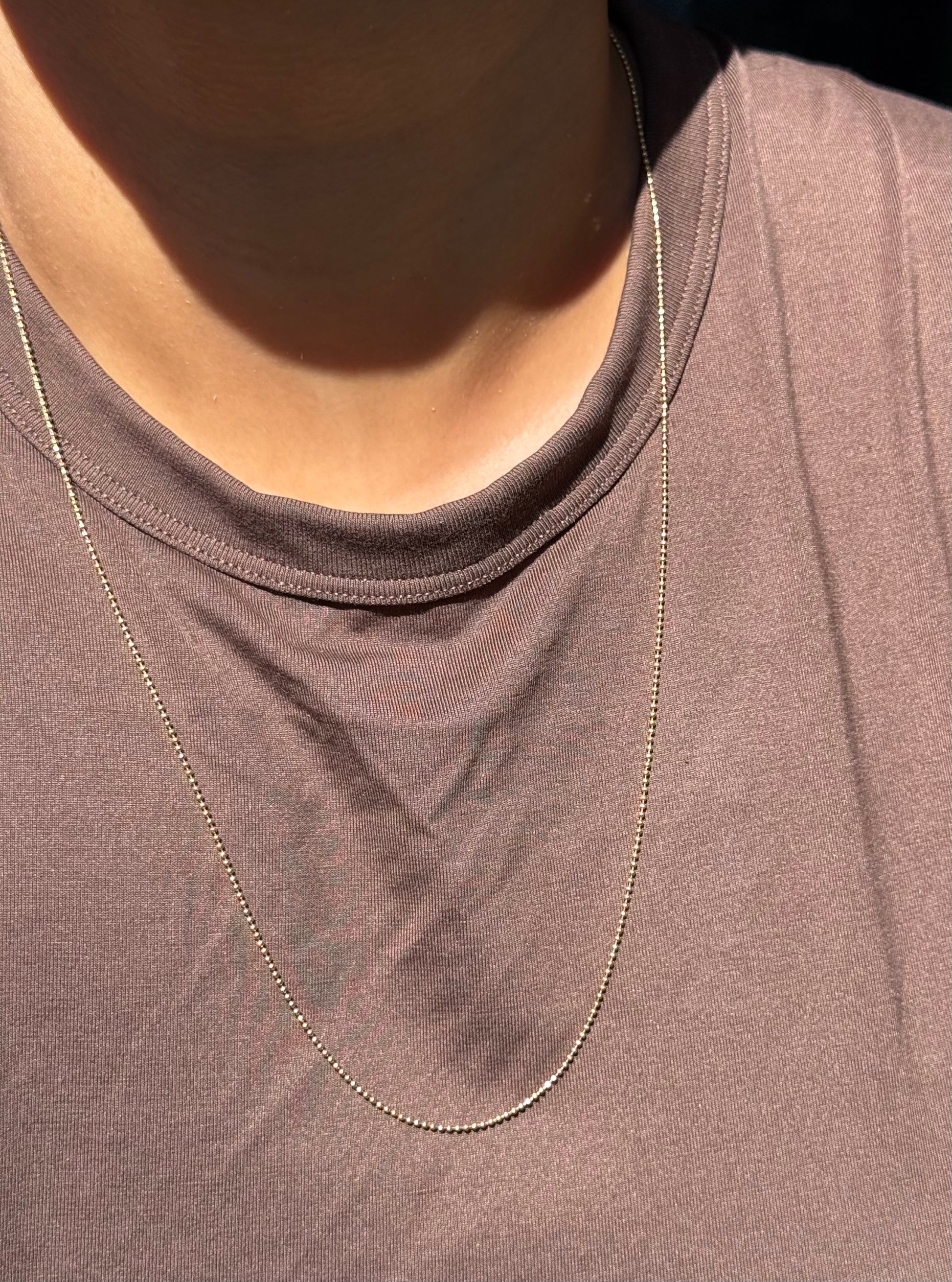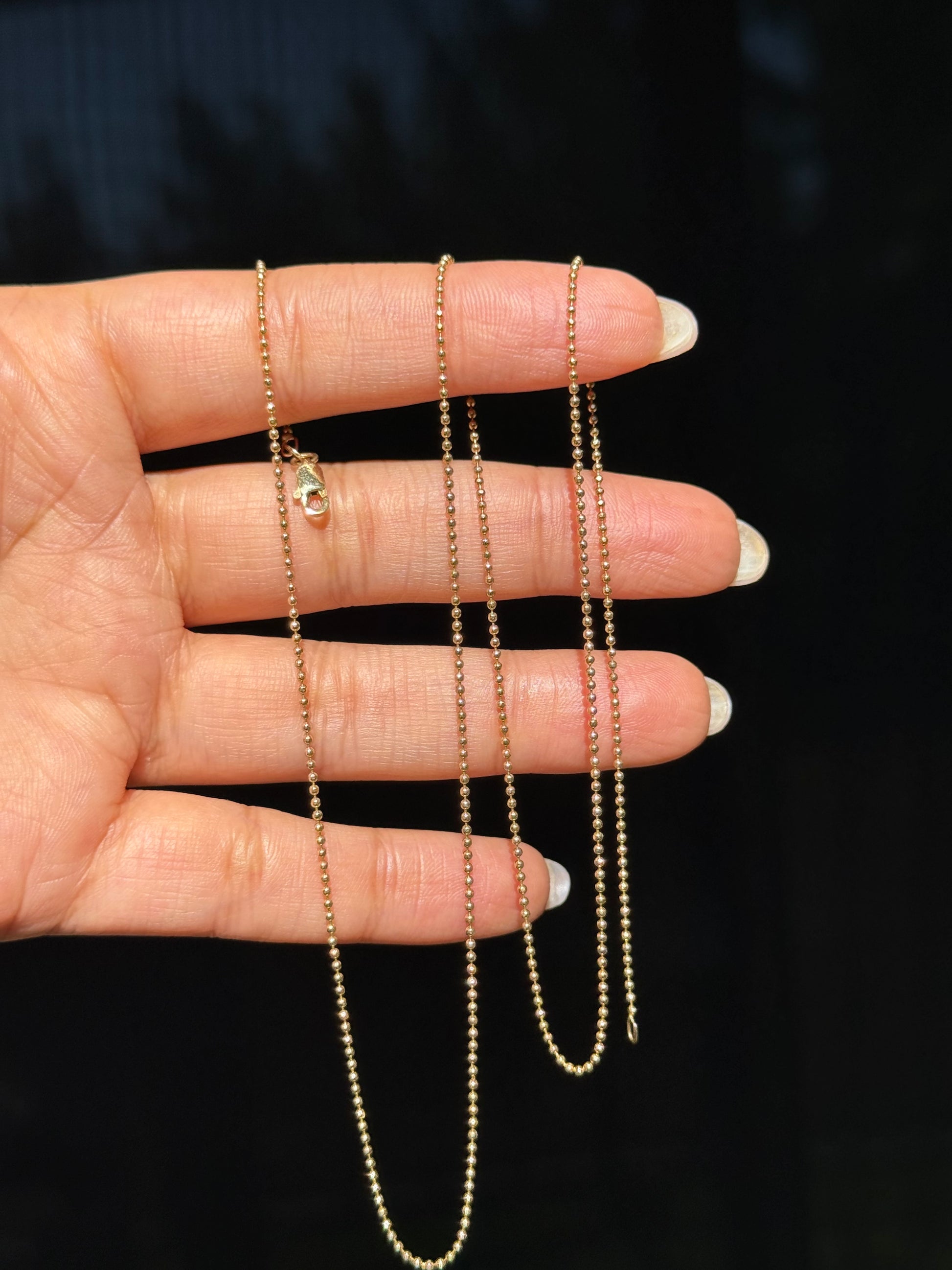 14k yellow gold faceted Ball chain hallmarked S Africa , measures 24.25”x1.2mm wide , lobster clasp