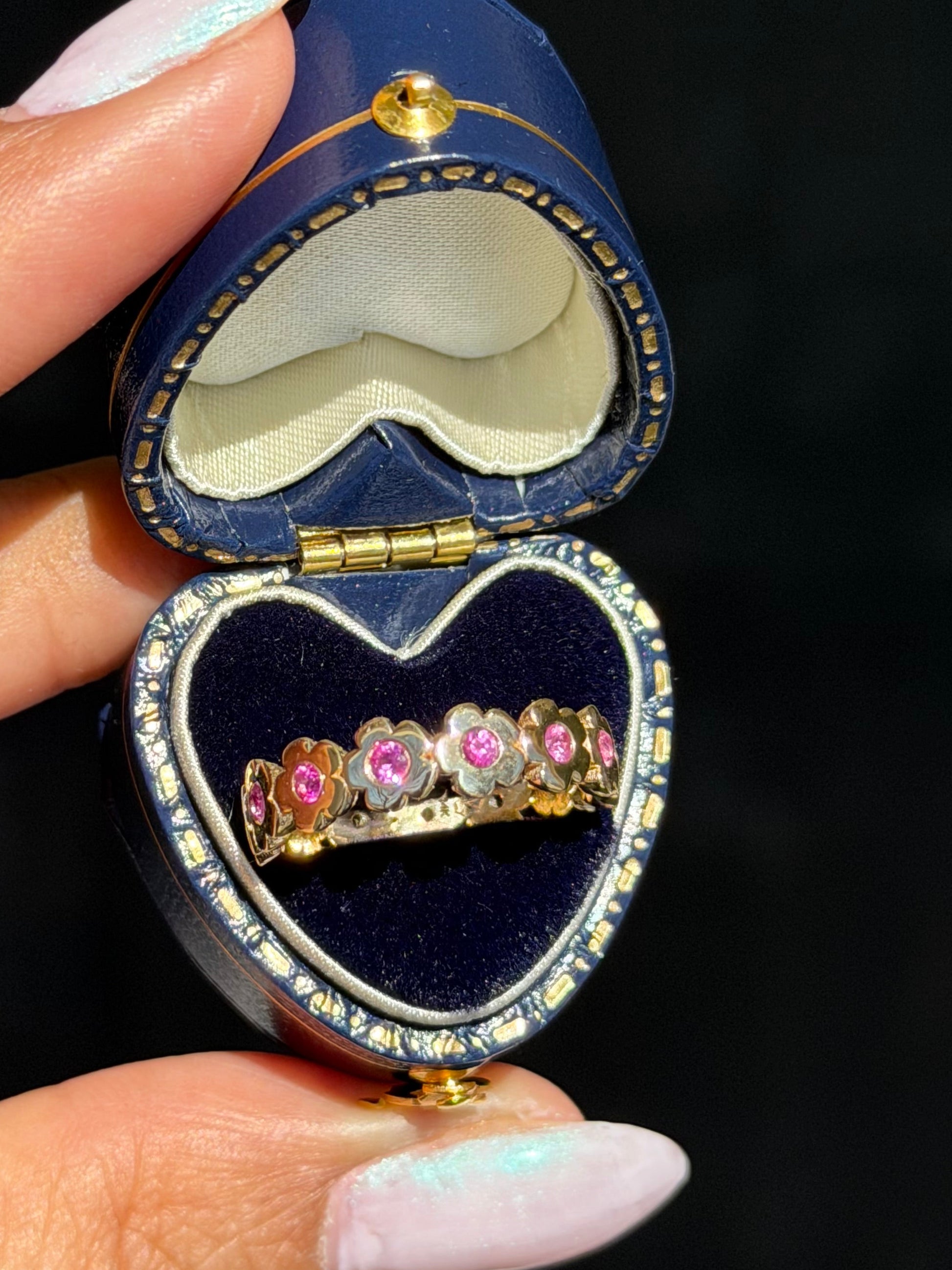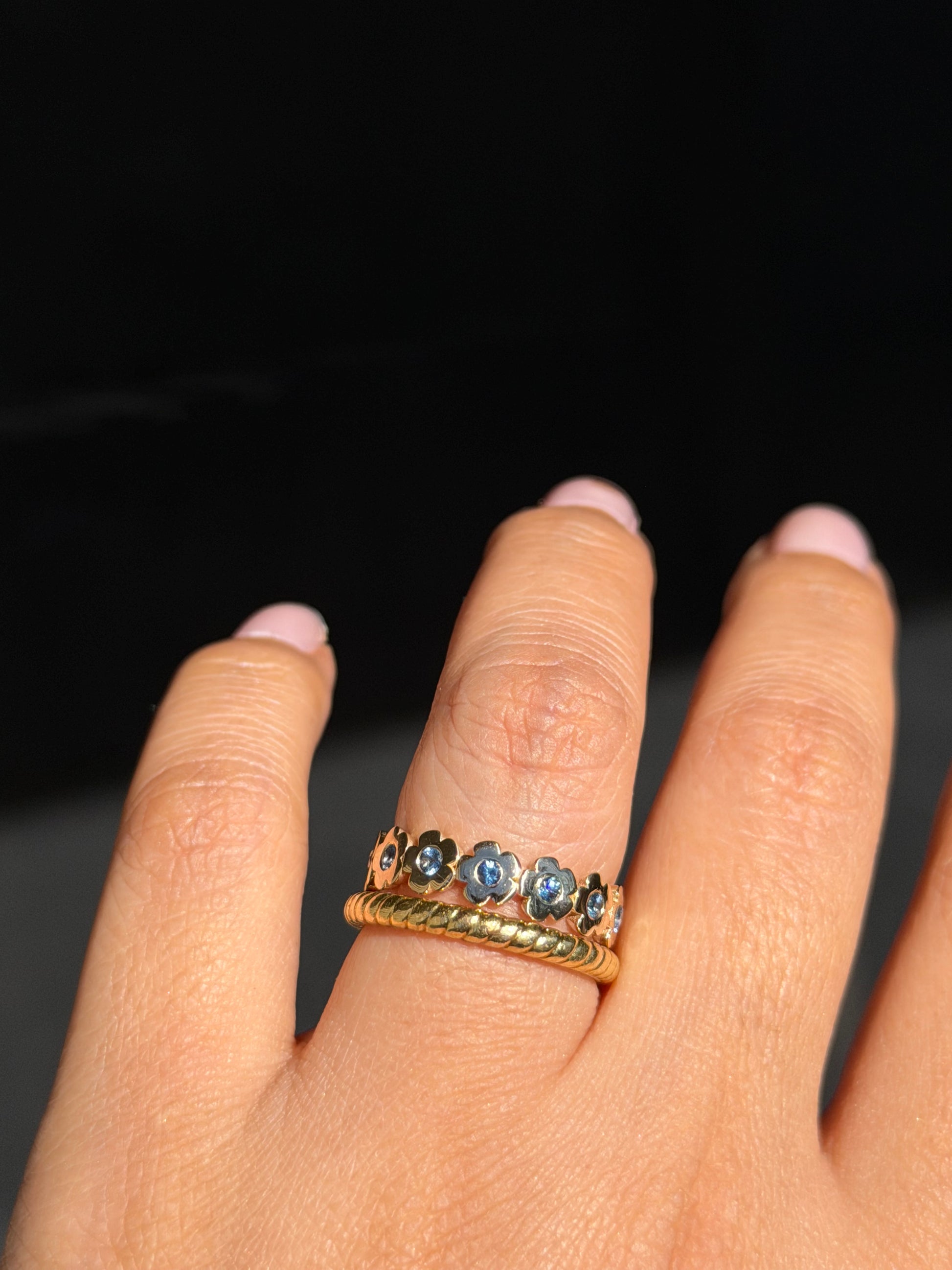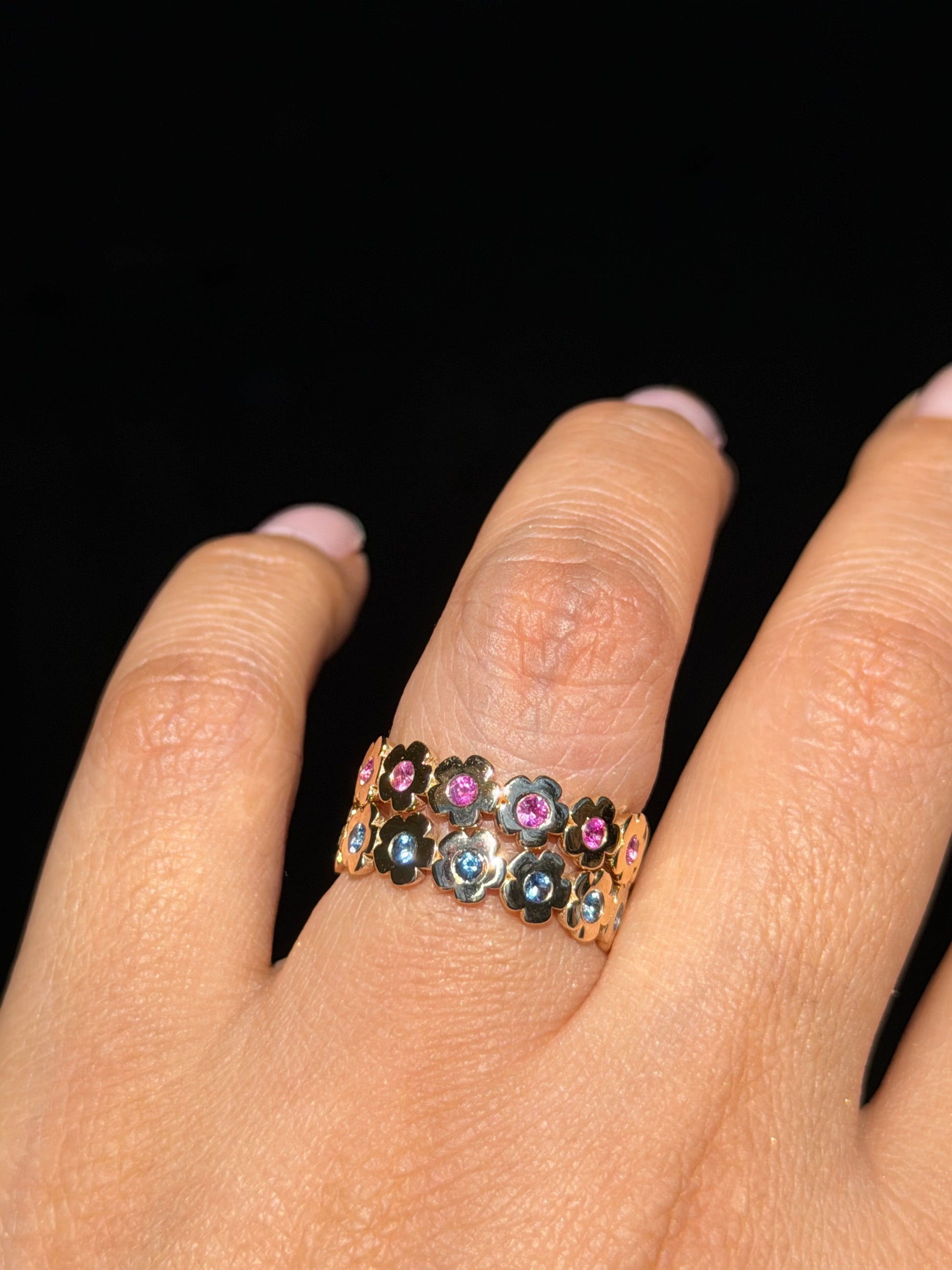 The ring features an eternity band of delicate flowers, each one symbolizing growth, resilience, and the quiet strength it takes to keep going. Flowers bloom again and again, season after season, no matter how long the winter has been.