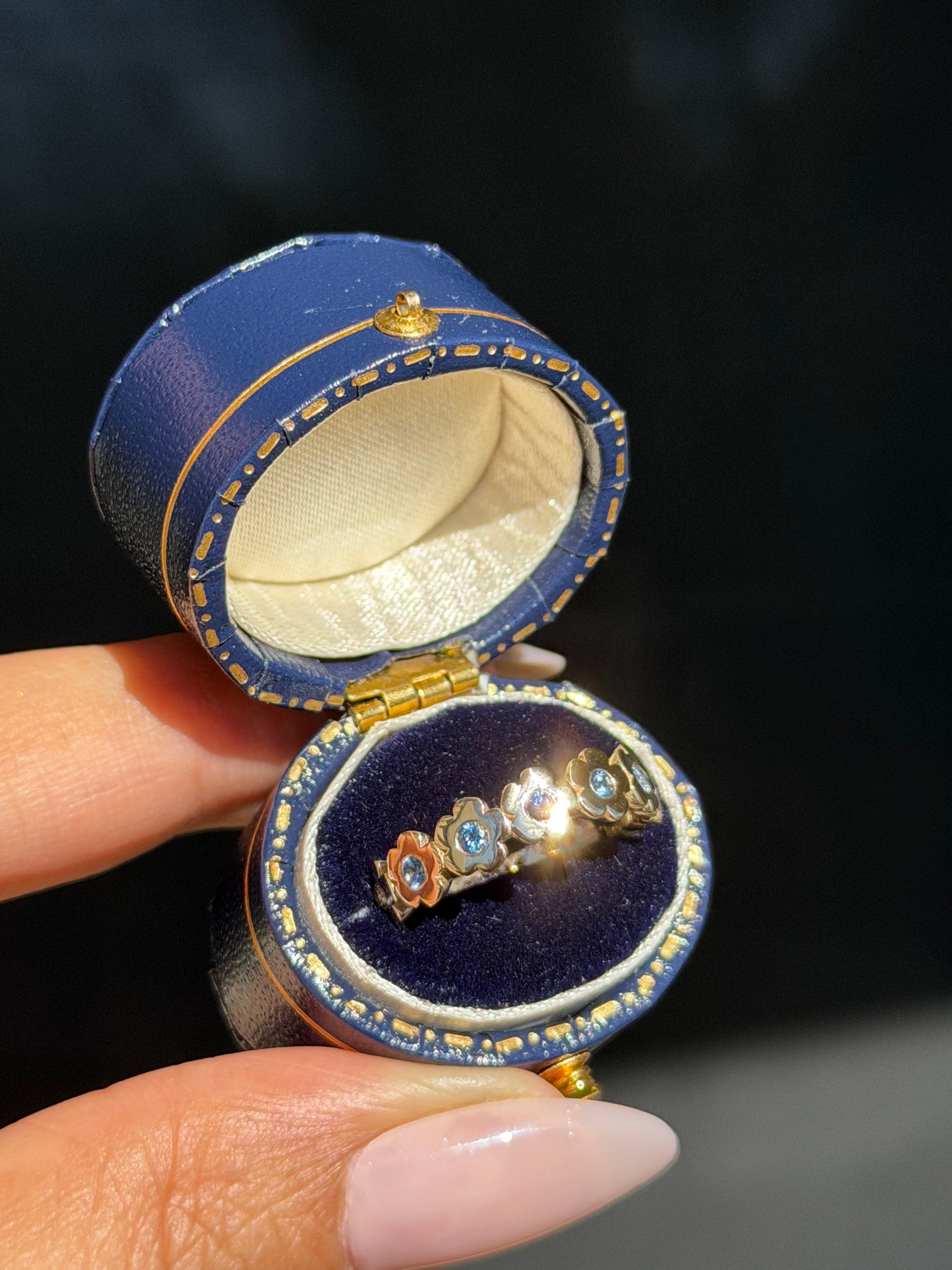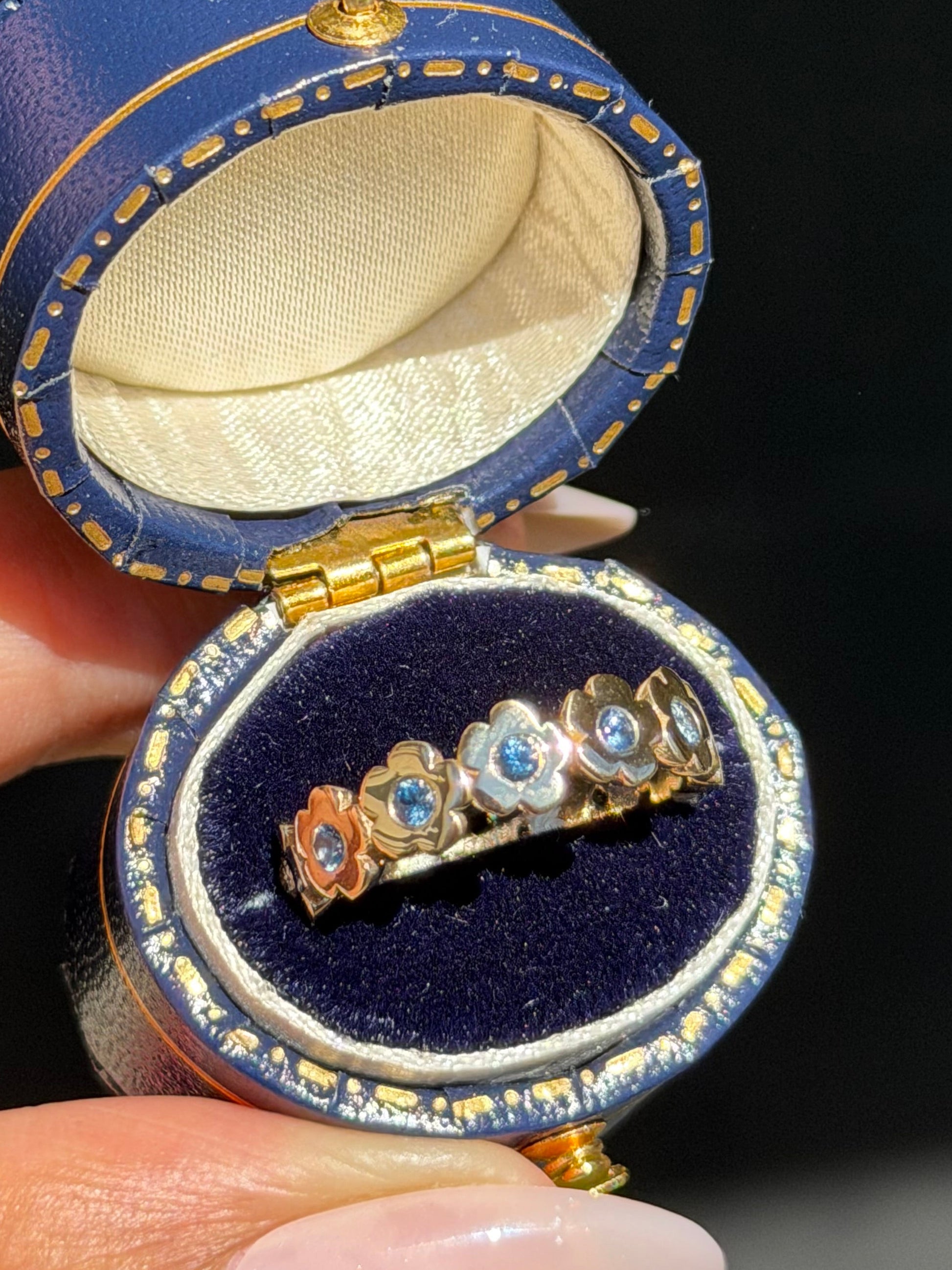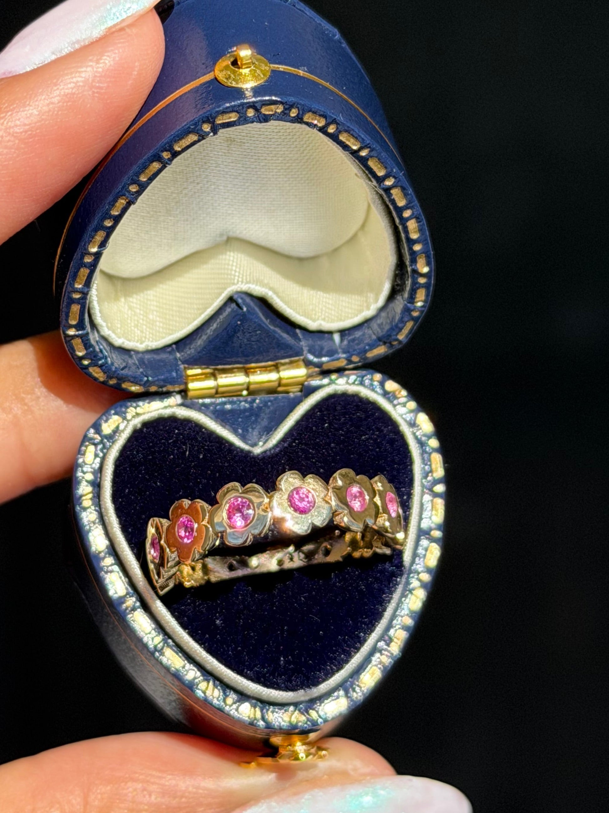 The ring features an eternity band of delicate flowers, each one symbolizing growth, resilience, and the quiet strength it takes to keep going. Flowers bloom again and again, season after season, no matter how long the winter has been.